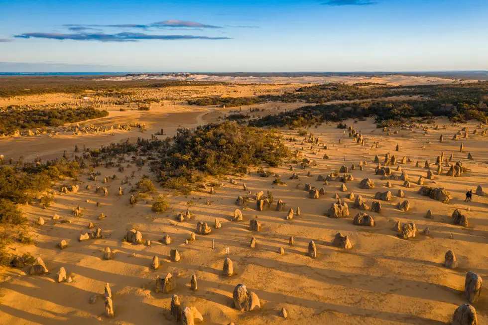 Any time of year is great to visit Nambung National Park but it is especially radiant in September and October when the weather cools down a little and the wildflowers and wattles come into bloom. The best views and photographs can be captured either early in the morning or late in the afternoon as shadows begin to ripple across the eerie landscape and the colours begin to change over the pinnacles as the sun descends into the Indian Ocean and darkness illuminates the infinite and expansive night sky above.